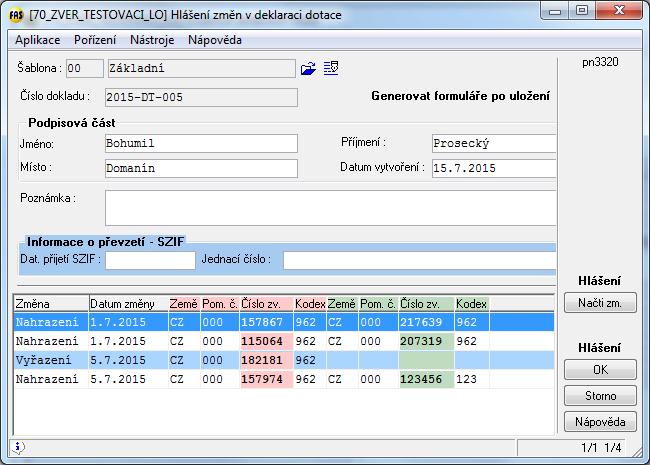 • Datum do: Datum do kdy je možné zasílat hlášení o změnách dekladovaných zvířat.