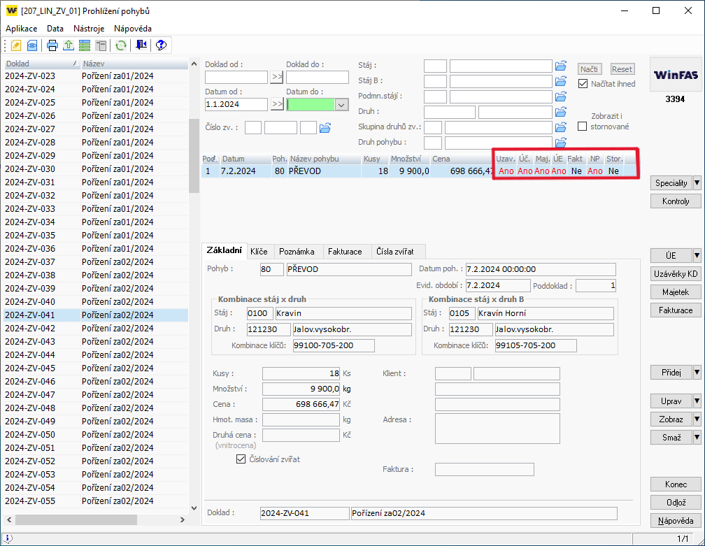 - Uzáv. = Vytvořena uzávěrka za období pohybu (Uzávěrka krmných dnů *3391) - návod +1353
